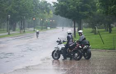 Para ter uma ideia de como o papo estava bom, ficamos conversando no meio da rua, os poucos carros desviando da gente, e quando começou a chover forte recolocamos os capacetes e continuamos a conversa.